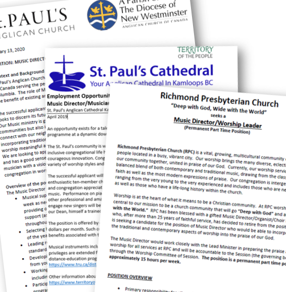 Regularly I received emails with organist/music director vacancies. Details about what is expected are included, and in one case, applications were to be emailed to the “search committee.” Makes me wonder: how do our churches search/find organists? When ministers are leaving, a calling committee is appointed. Their task is to